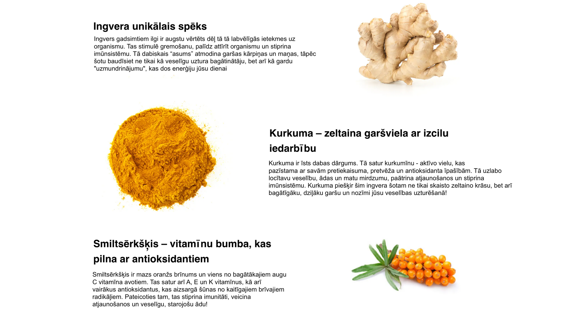 - Garša - Ingvers, smiltsērkšķis, kurkuma