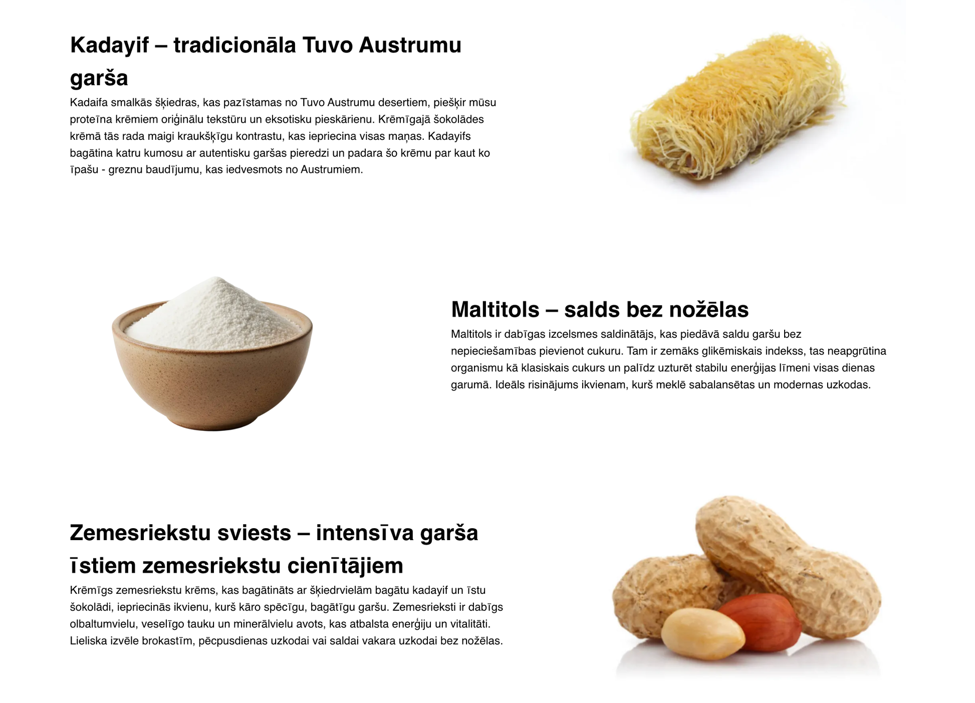- Alergēnu saraksts - Pistācijas, piens, soja, kvieši, sezama sēklas, sūkalas